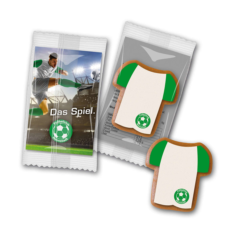Lebkuchen-Trikot im Flowpack mit Werbekarteab 10 Arb.-Tg. | ab 250 Stk. -