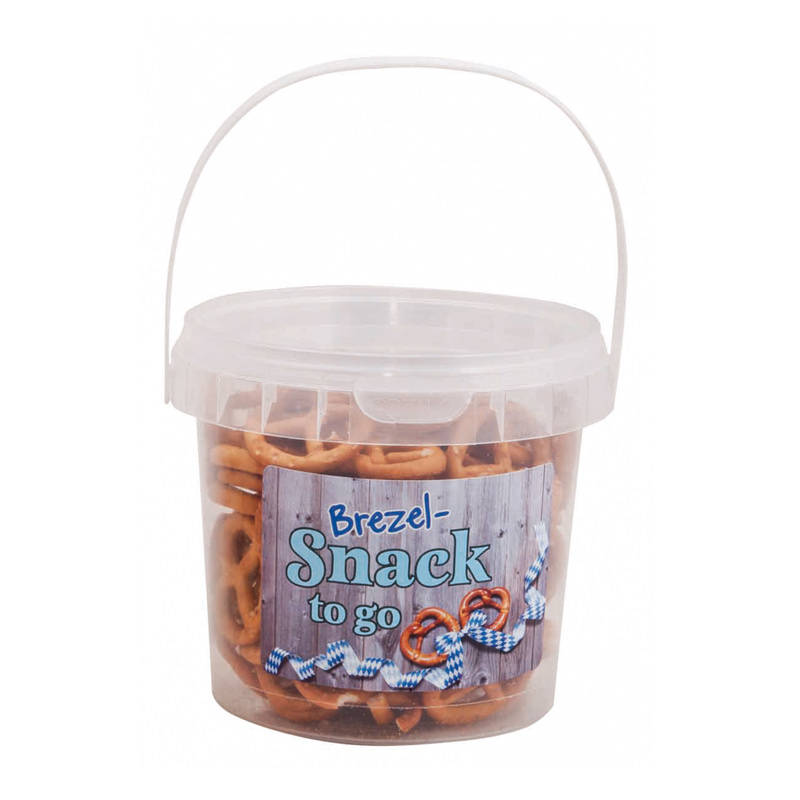 130 g Mini Brezeln im transparenten Eimer mit Werbe-Etikettab 10 Arb.-Tg. -