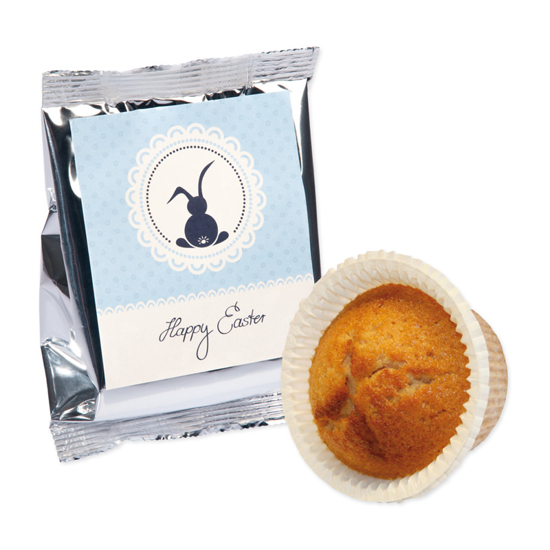 60 g Orangen-Muffin in Silberfolie mit Etikett und Logodruckab 10 Arb.-Tg. -