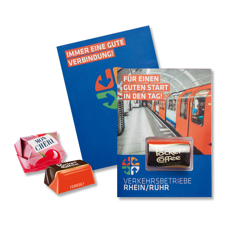 Premium Card mit Schoko-Herz und Logodruckab 15 Arb.-Tg. -