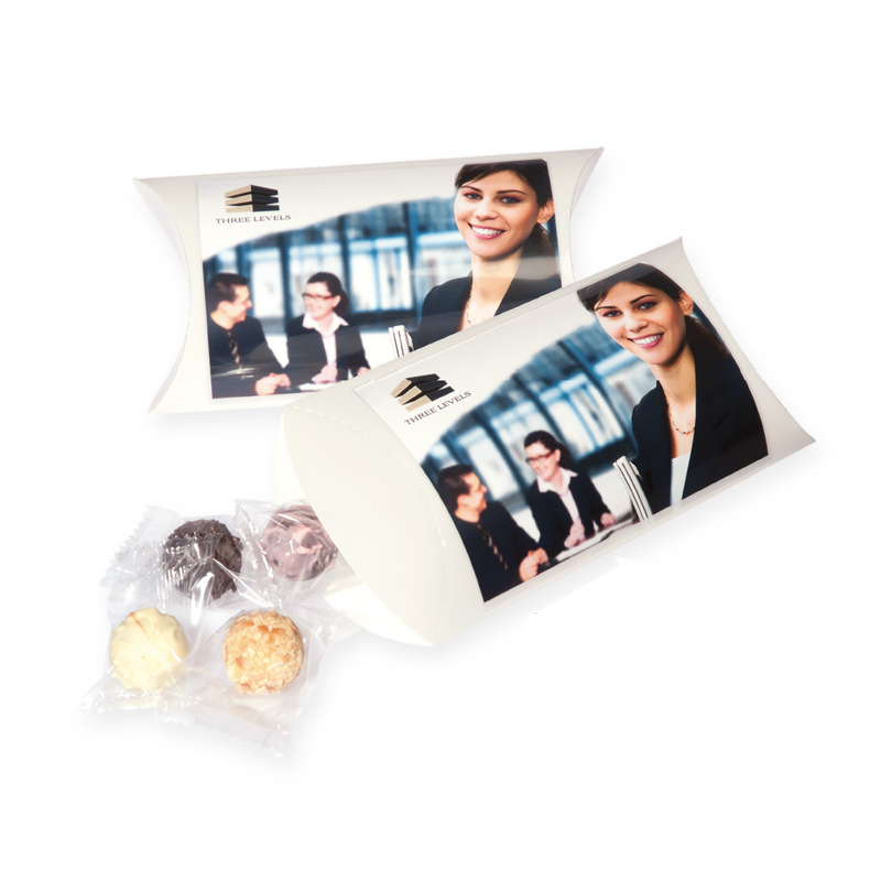 75 g Trüffelpralinen in Kissenverpackung mit Logodruckab 10 Arb.-Tg. -