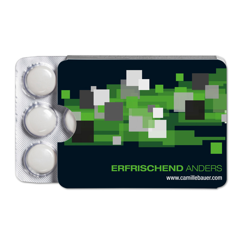 A5 Karte mit Pfefferminzdose und Werbedruckab 10 Arb.-Tg. | ab 288 Stk. -