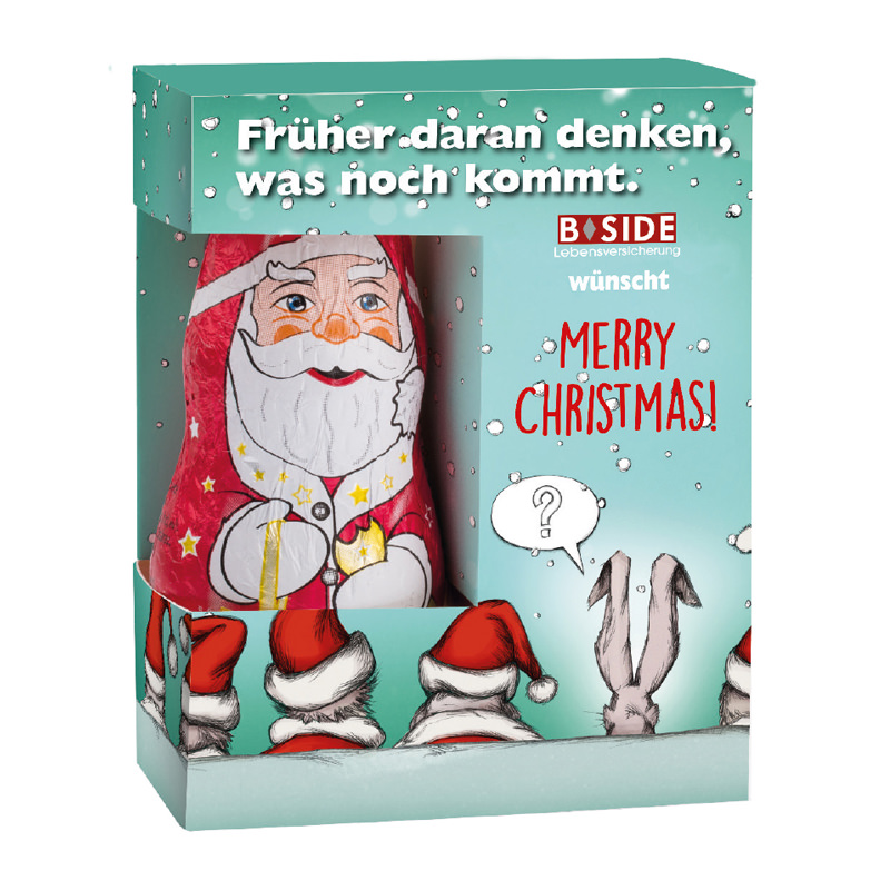 Weihnachtsmann und Osterhase in einer Duo-Werbeboxab 15 Arb.-Tg. -