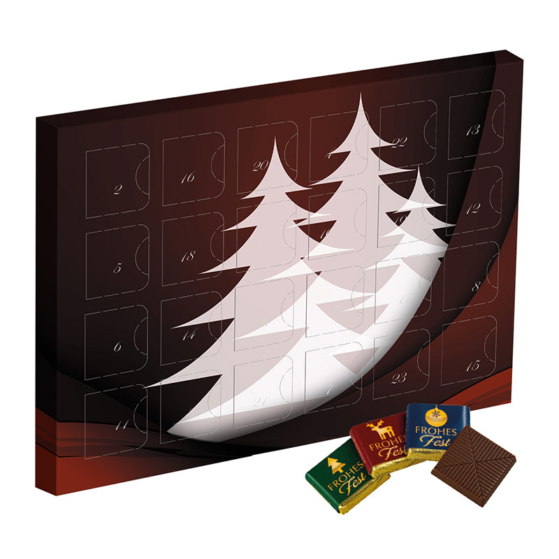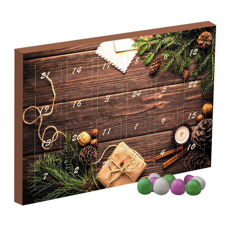 Adventskalender klappbar mit Schoko Kokoswürfel-Mix und Werbedruckab 15 Arb.-Tg. | ab 200 Stk. -