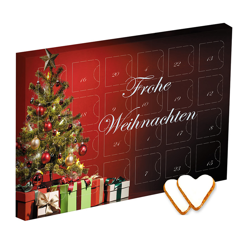 Adventskalender Maxi mit Zimt-Apfelherzen und Werbedruckab 15 Arb.-Tg. -