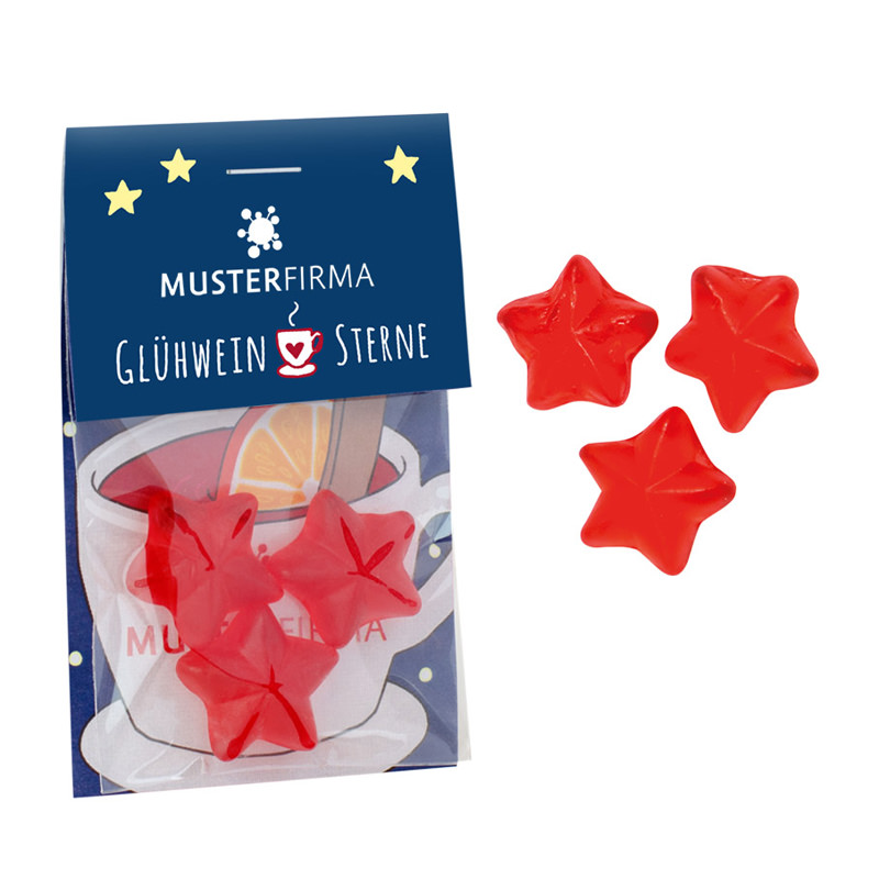 Glühwein-Zimt Fruchtgummisterne in Naschtasche mit Werbereiterab 16 Arb.-Tg. | ab 500 Stk. -