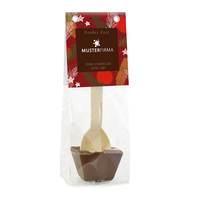 Apfel-Zimt Schokolöffel im Standbodenbeutel mit Werbereiterab 16 Arb.-Tg. | ab 250 Stk. -
