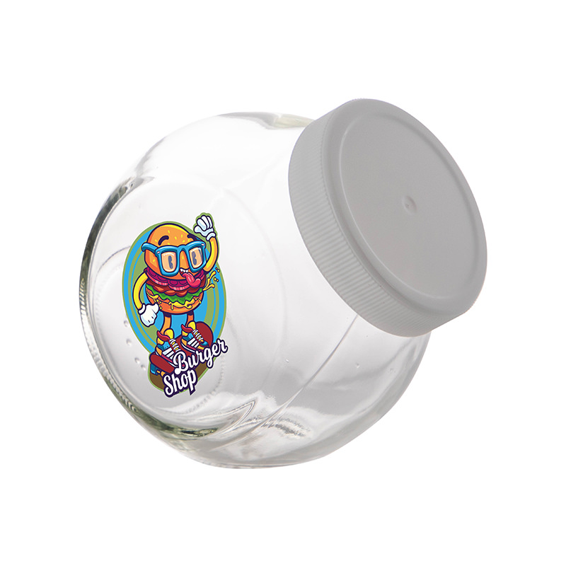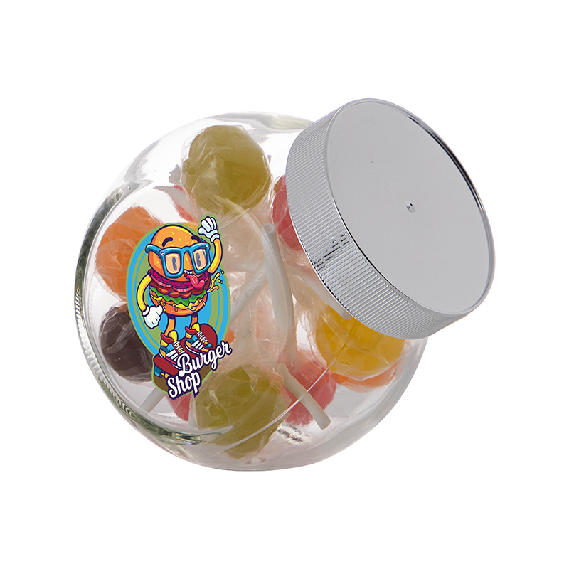 1 Liter Schräghalsglas befüllt mit Lollies und mit Werbeetikettab 10 Arb.-Tg. | ab 50 -