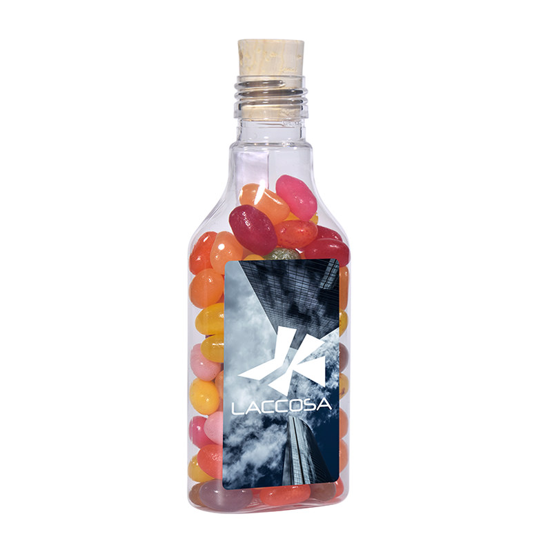 115 g Jelly Beans in einer Flaschenpost mit Werbe-Etikettab 10 Arb.-Tg. -