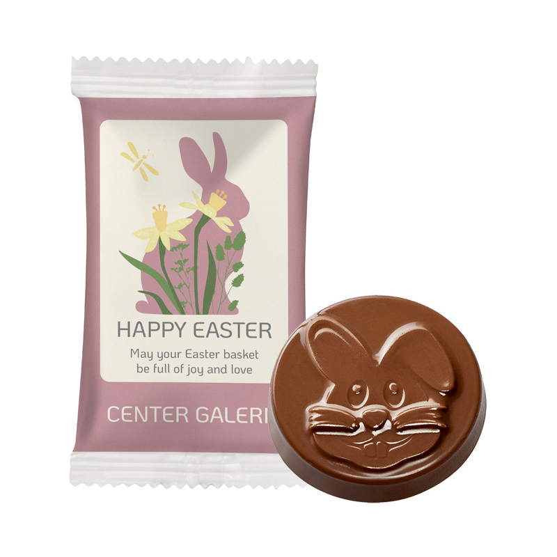 10 g Osterhasen-Schokoladentaler im Papierflowpack mir Werbedruckab 0,47 € | ab 15 Arb.-Tg. | ab 5.000 Stk. -