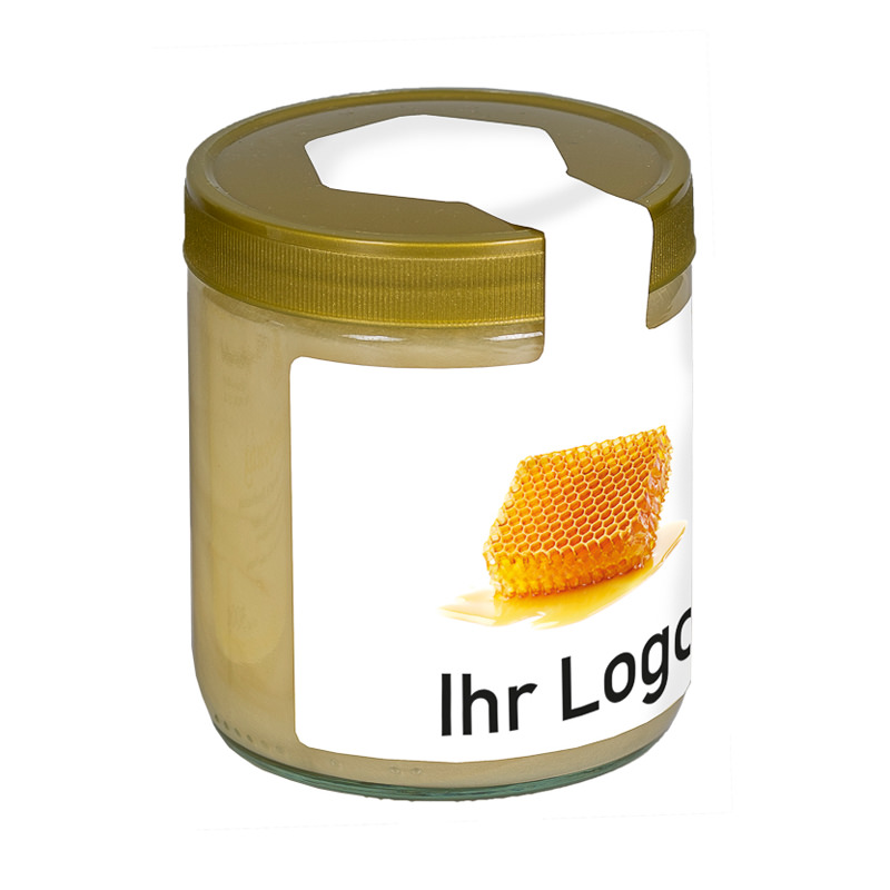 500 g Akazienhonig im Glas mit Flügeletikett und Werbedruckab 7,62 € | ab 15 Arb.-Tg. | ab 300 Stk. -