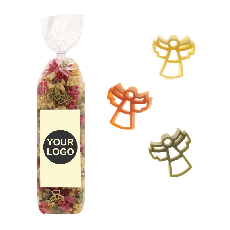 250 g Werbe-Nudeln in Engel-Form im Standbeutel mit Werbeetikettab 2,16 € | ab 15 Arb.-Tg. | ab 100 Stk. -