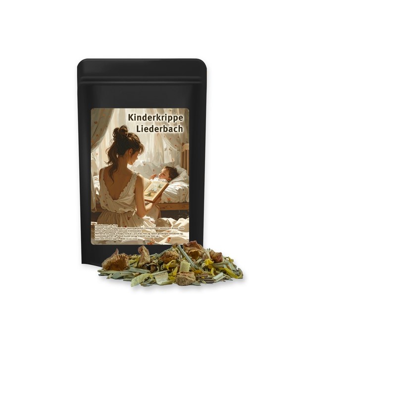 12 g Bio Kräutertee Seelenwohl im schwarzen Mini Doypack mit Werbeetikettab 2,14 € | ab 15 Arb.-Tg. | ab 200 Stk. -