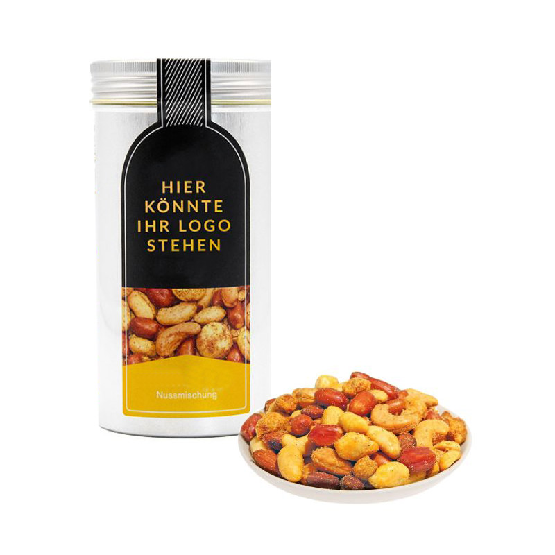 60 g Nussmischung "Safari" in der Aludose mit Frontetikettab 2,95 € | ab 5 Arb.-Tg. | ab 50 Stk.