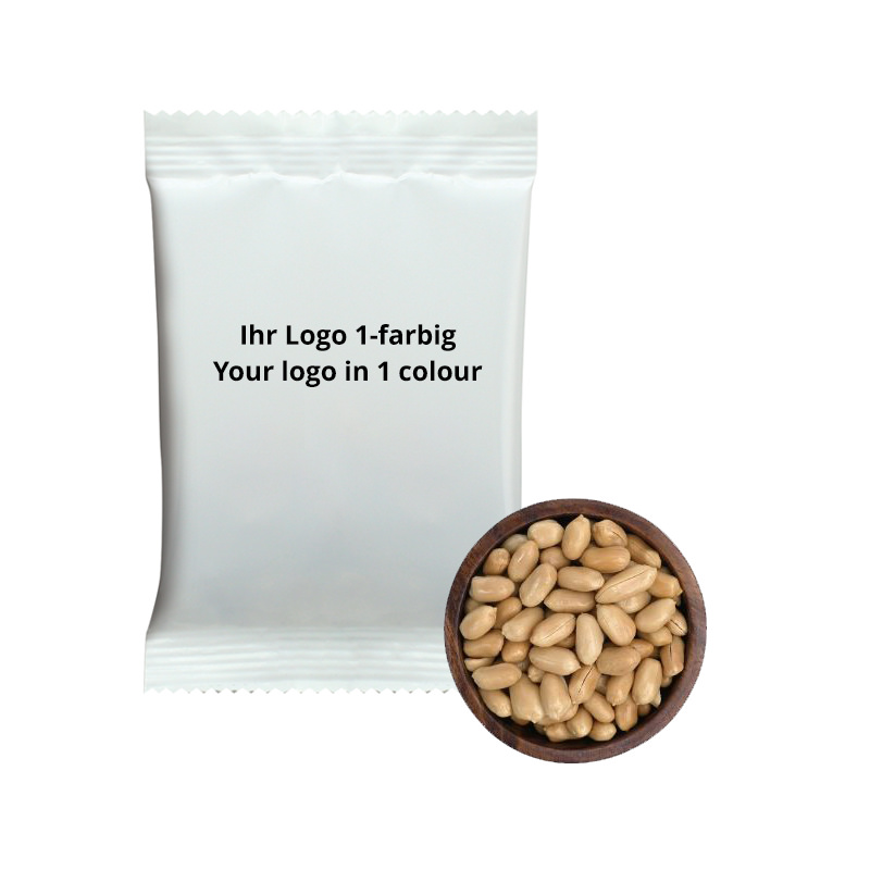 Jumbo Erdnüsse geröstet & gesalzen im Flowpack mit Werbedruck 1-farbigab 0,39 € | ab 24 Arb.-Tg. | ab 3.000 Stk.