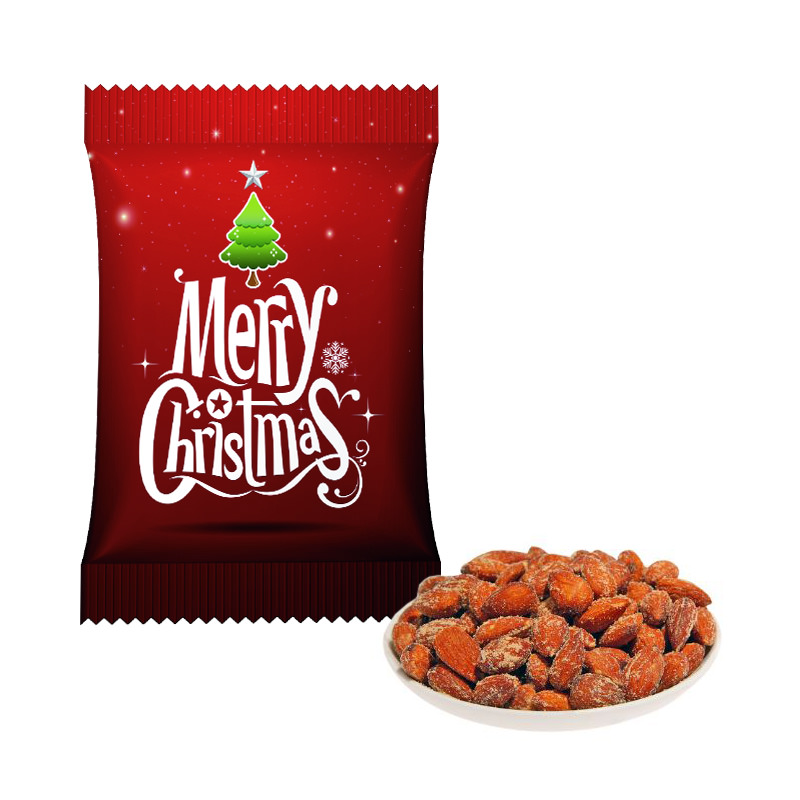 Rauchmandeln Flowpack mit Werbedruck 1-farbigab 0,60 € | ab 24 Arb.-Tg. | ab 3.000 Stk.